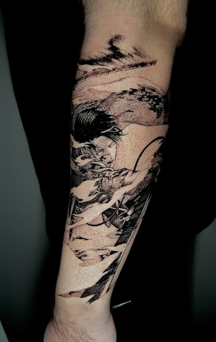 I’m Mattia, from northern Italy. I specialise in a mix of the new traditional and new school and blackwork illustrative as well. I love anime, manga, nerdy stuff and Japanese art and culture. I love working collaboratively with my clients. It makes each piece unique.
